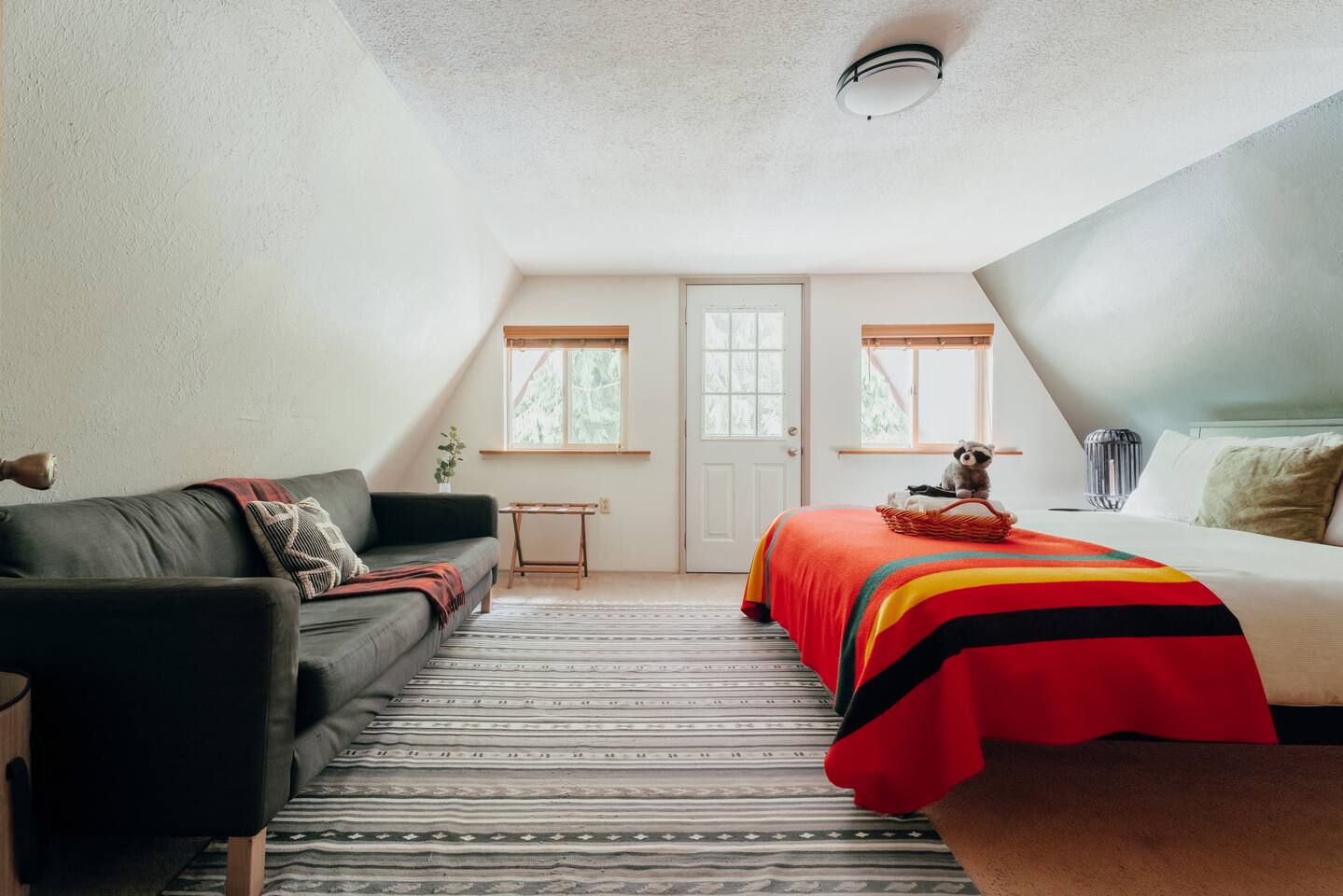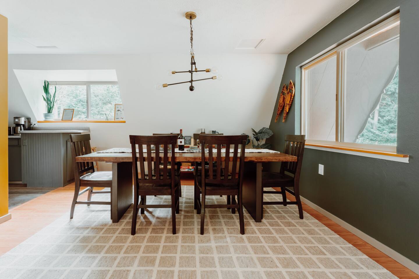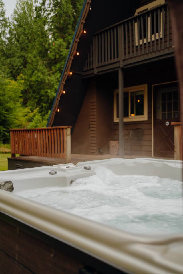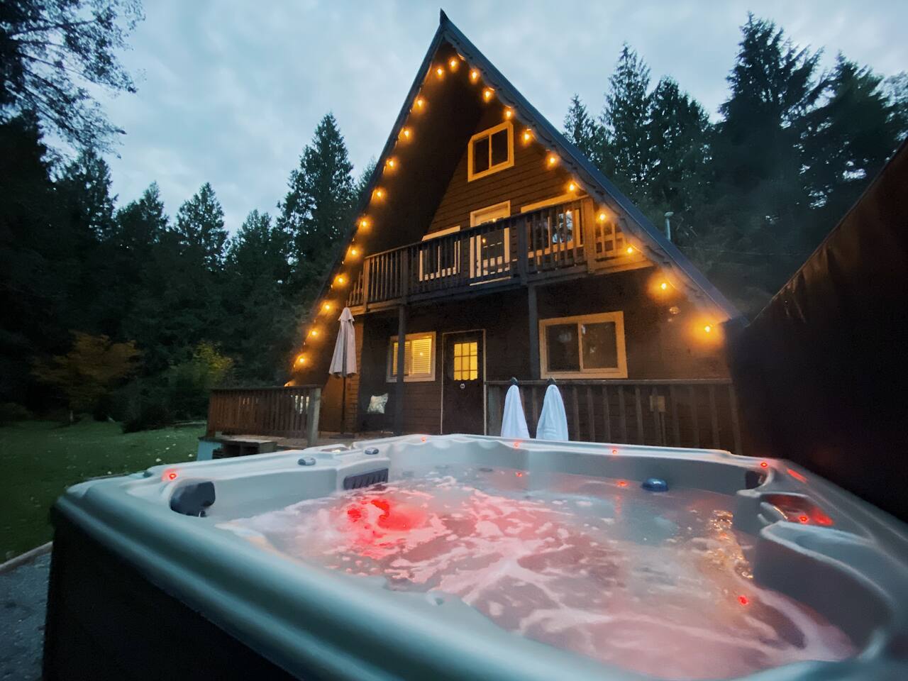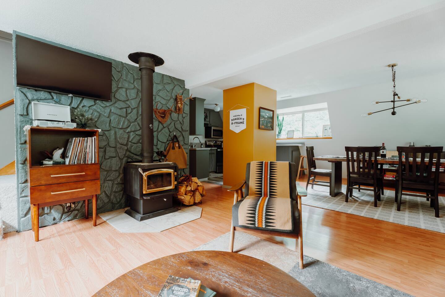 Our cozy A-frame cabin features 3 private bedrooms, each with a queen-size bed—perfect for families or small groups. The fully equipped kitchen has everything you need to cook a hearty meal after a day exploring Mount Rainier National Park. The open floor plan invites connection, whether you're gathered around the dining table, lounging on the oversized couch, or curling up by the wood-burning stove for a night in. Unwind in the private hot tub under a blanket of stars—tucked just off the back deck and surrounded by towering trees. The home sits on 5 forested acres (not in a development!), offering rare seclusion for Ashford. While we do have neighbors, they’re acres away—providing true peace and quiet. Planning a longer stay? Take advantage of the in-unit washer and dryer—great for extended visits or a quick load after a hike. Heating: We primarily rely on our wood-burning stove to heat our home. We will provide firewood, kindling and fire starters for your stay. We do have an in-wall electric heater that does a pretty good job of keeping the place warm, but in the deep winter you'll want to use the wood-burning stove. Instructions are included in the manual.