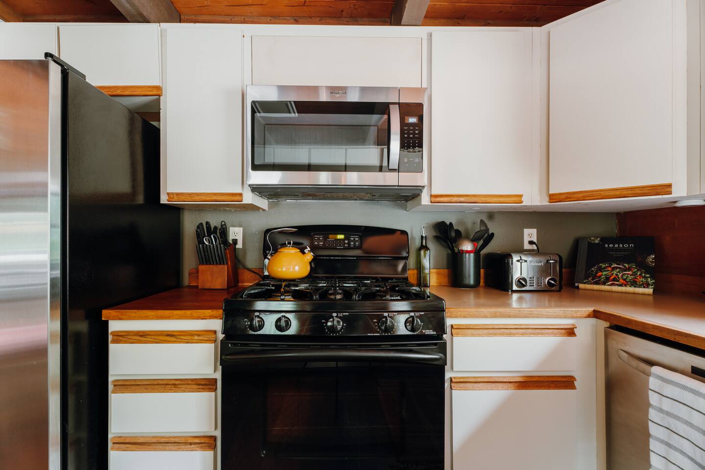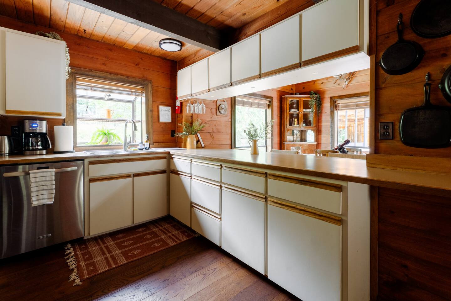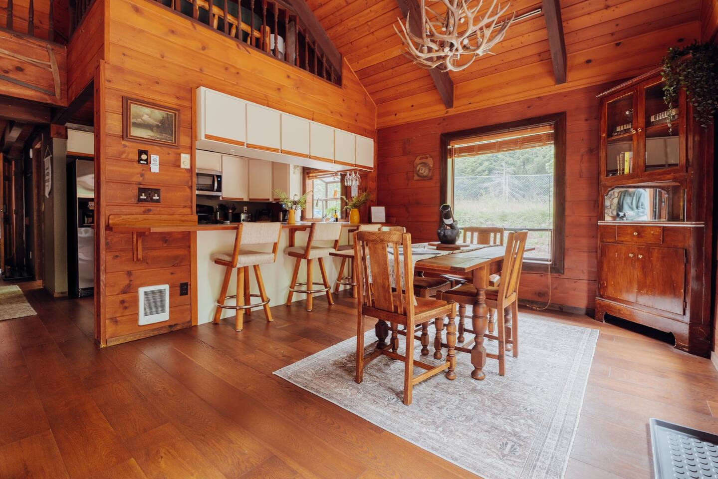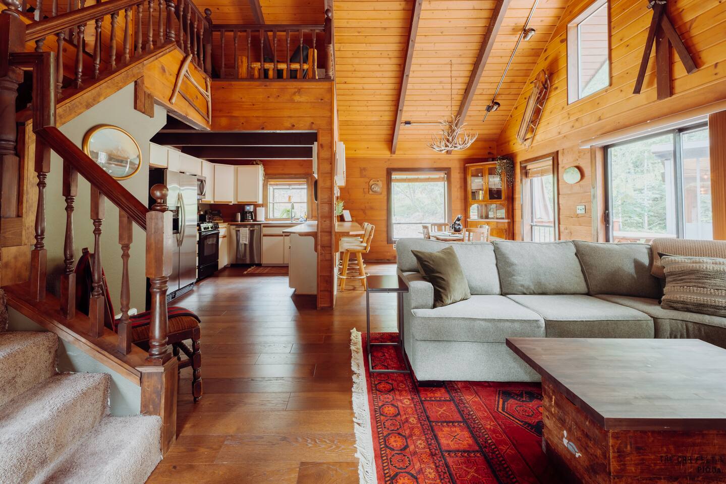 1 private bedroom featuring a queen bed and 1 private loft with 2 queen beds + a sleeper futon for the kiddos. Full sized kitchen has all of the basic cooking essentials needed for a family-sized dinner after a long day in the mountains. Open floor-plan provides the perfect space to enjoy each other's company. Cozy up by the wood-burning stove, cuddle up on the large sectional couch and watch Netflix while you unwind. Laundry units included if you have an extended stay or just need to do a quick load of laundry after a long day in the park. Relax, listen to the neighboring Copper Creek and sooth those sore muscles in the private and covered hot tub. Located in the backyard just off the deck and surrounded by nature. We are a 1.5 minute walk to the famous Copper Creek Restaurant. Let them cook and order takeout or dine-in for breakfast, lunch and/or dinner. Their huckleberry pie is incredible! Our home is NOT in a development. This is very rare for Ashford as most homes are very close to their neighbors and in cabin communities/developments. We are right off the main road into Mount Rainier National Park. We love the convenience, but note that you may hear some road noise. We are also 150 feet away, and across the creek from the Copper Creek Restaurant.